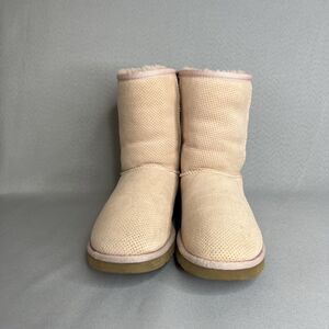 Womens UGG Boots Light Pink Tan Classic Short Perforated Suede Wool Boho Sz 6