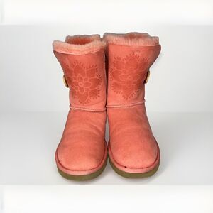 Womens UGG Boots Pink Coral Kimono Bailey Button Flower Rare Limited-Edition Sz6