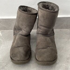 Worn condition - Women's UGG Classic Short Boots. These have been well loved and could use a good cleaning! Some creases, dirt, and matted down bottom sole fur (all as pictured). Color: grey. Size: 9.