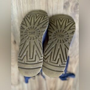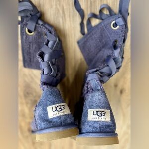 Womens UGG Heirloom Ribbon Lace Up Purple Woven Cloth Boots Mid Calf SZ 9 EUC