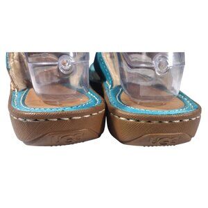 Women's UGG Layback Teal Suede Shearling-Lined Thong Sandals Slippers Size 8