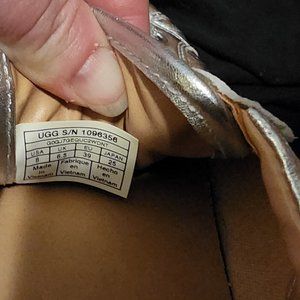 Metallic silver UGG sneakers, worn once. Runs a little small. One shoelace is a little frayed, see photos.