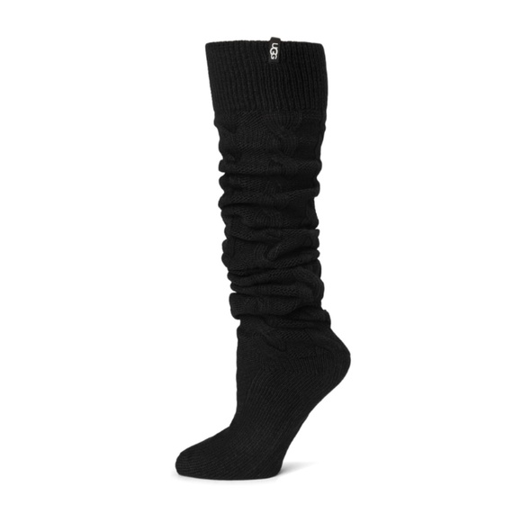 Womens UGG Zanika Thigh High Cable Knit Socks. Black, 1171626