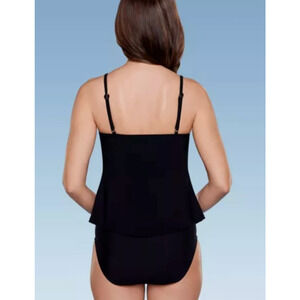 Women's UPF 50 Tiered Tankini Top Aqua Green Black X Strap Layered Medium Swim