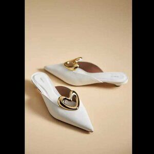 Women's US 5-5.5 / EU 36 Maeve x Anthropologie White heart mules kitten heels