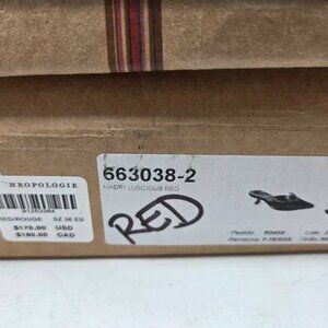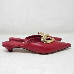 DESCRIPTION: Heart mule heels in red. The box for these is super messed up from shipping