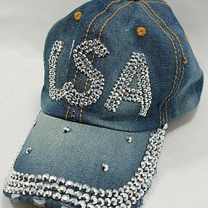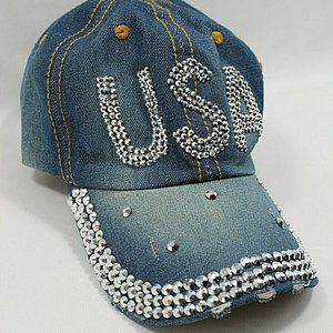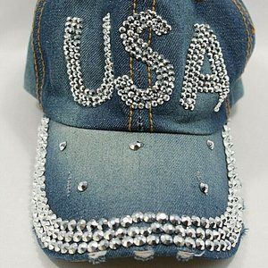 Womens USA Silver Embroidered Ripped Jean Baseball Cap