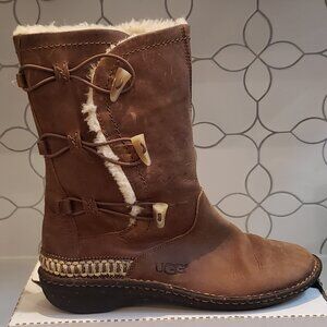 Womens Ugg Kona Leather Boot With Sheepskin Lining Size 10M