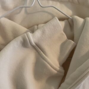 Cream color with light brown lettering. Worn once. No wear marks.