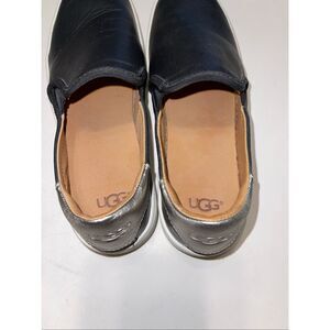 Women's Uggs Black Leather Slip on Flat shoe 1019108