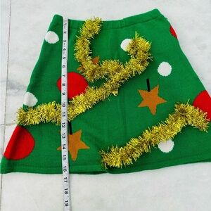 Womens Ugly Christmas Skirt Knit Stretch Mini Ornament Tinsel Green Red Small