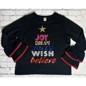 Women's Ugly Christmas Sweater Sequins Joy/Dream/Jolly/Wish Junior Sz LG 12-14