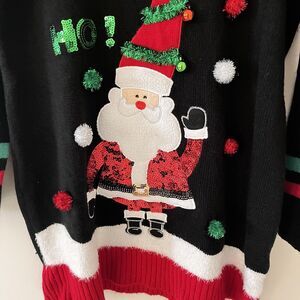 Women's Ugly Christmas Sweater Size XL Santa HO HO HO Embellished Knit Tunic