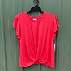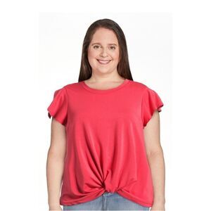 Women's Ultra Soft Relaxed Fit Twist Front Flutter Sleeve Top T-Shirt Size 3XL
