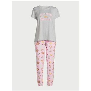 This 2-piece sleep set includes a comfortable, short-sleeve tee over matching joggers—perfect for chilly nights. Two side-seam pockets keep your fave accessories and phone close by. These adorable pajamas are just what lazy day days call for.