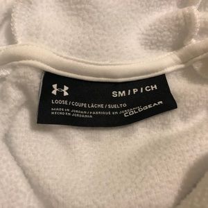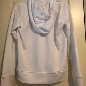 Women's size small Under Armour Hoodie, with light blue Under Armour symbol embroidered on chest. Large pockets in front and hood. Worn once, and is in great condition! From a smoke free, pet free home.