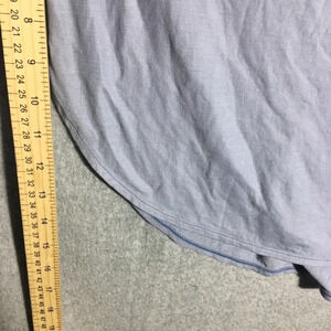 Measurements: Chest is 23 inches. Armpit to bottom hem is 10 inches at the shortest and dips down to 17 inches. Material is 80% polyester and 20% lyocell.