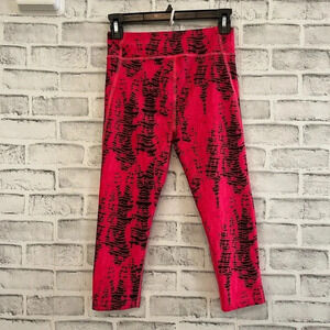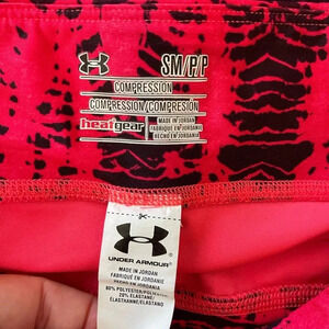 Women’s. Under Armour. Black and pink leggings. Capri length. Preowned excellent condition. No stains/tears. Size Small.