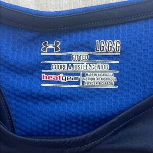 Used in excellent condition, Women’s Under Armour racerback dri fit workout tank in Navy & royal blue in size large. Fitted tank. Part of the heat gear collection.