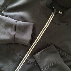 Black full-zip jacket by Under Armour. Features front pockets and a semi-fitted design.