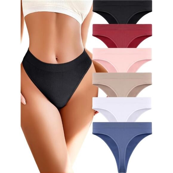 Womens Underwear, Seamless Underwear Thongs for Women, High Waisted thongs, 6 PACK Comfortable thongs