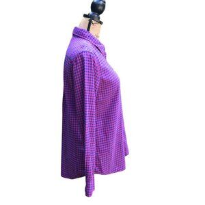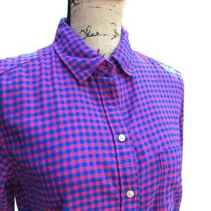Womens Uniqlo Pink & Blue Plaid Button-Up Long Sleeve Shirt Size L Cotton