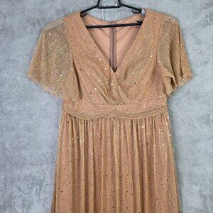 Womens Unit Horse Sequin Embellished Gold Maxi Dress Short Sleeves V Neck XXL