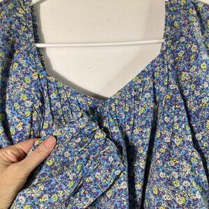 Womens Universal Thread V Neck Baby Doll Floral Top Blue White XS Cotton Cropped
