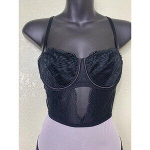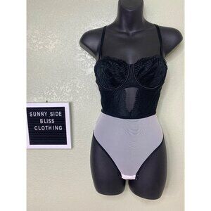 Women’s Unlined Underwire Black & White Lace Bodysuit Size Extra Small