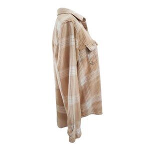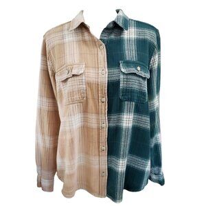 This women's upcycled distressed flannel with an embroidered "Rockin Xmas Tree" patch in size XL is a unique and festive addition to any wardrobe. Made from 100% cotton flannel, this button-up shirt features a classic long sleeve with a collared neckline and multicolor plaid pattern. Perfect for casual occasions in any season, this handmade piece from ECOPOSH4U has a regular fit and is machine washable for easy care. Add a touch of personality to your outfit with this eye-catching and eco-friendly top.