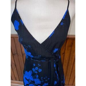 Womens Urban Outfitters Black Blue Floral Spaghetti Strap Wrap Tie Dress XS
