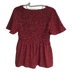 Women's Urban Romantics Red & White Polka Dot Smocked Top Blouse - Size Small