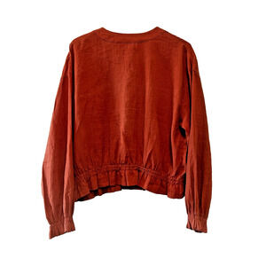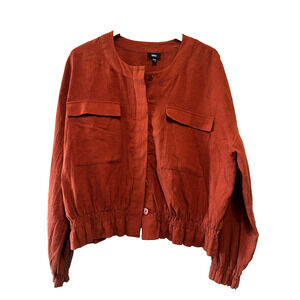 Womens Utility Bomber linen blend terracotta rust color transitional lightweight short Jacket Jacket XXL