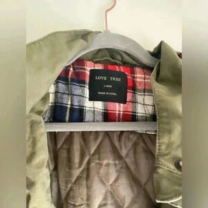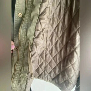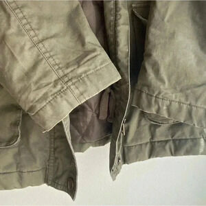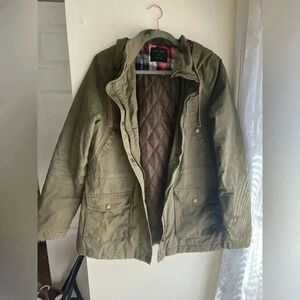 Women’s Utility Jacket Coat Army Green with Hood Flannel Insert Brass Buttons