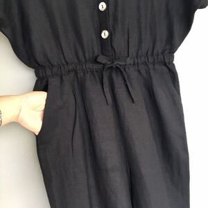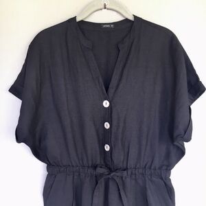 Oysho Utility Jumpsuit Women M Linen Blend Tie Waist Straight Short Sleeve BlackTag Bohemian, Boho, Coastal, Quiet Luxury, Timeless, Elegant, Sophisticated, Chic, Graceful, Traditional, Minimalist, Capsule Wardrobe, Neutral, Busisness casual, Party,