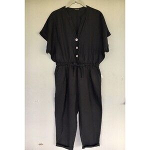 Women’s Utility Jumpsuit Women M Black Linen Blend Tie Waist Dressy Boho Coastal
