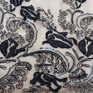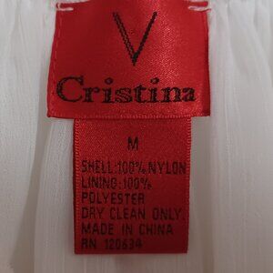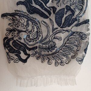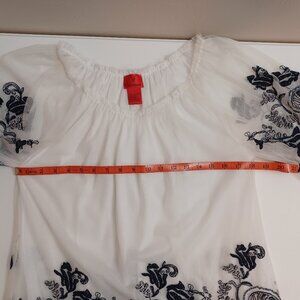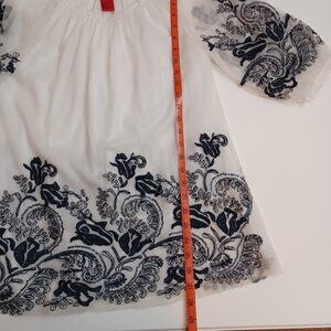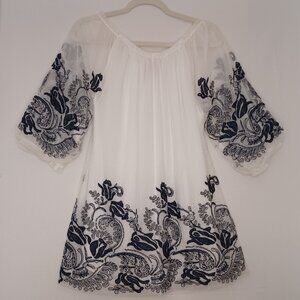 Women's V Cristina White Sheer w/white lining & blue floral embroidery Boho Med