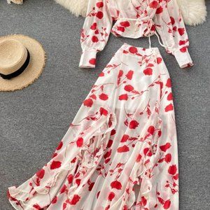 This Women's V Neck Long Sleeve Chiffon Printed Dress is made of cotton, polyester, and Synthetic fiber, light and comfortable, super comfortable to wear. It's a high waist and side split that show skinny, long legs, womanly curves, femininity sexy, and sophistic.