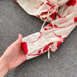 Women's V Neck Long Sleeve Chiffon Printed Dress