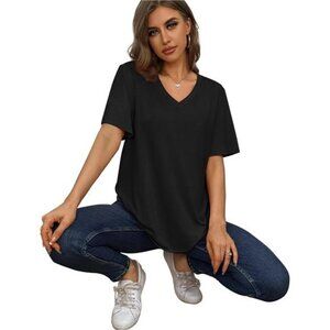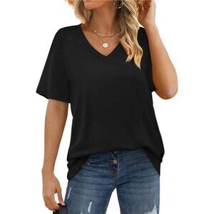 Womens Tops in Daily Loose Style:This basic short-sleeve v-neck shirt is designed to be comfortable and relaxed, allowing for easy movement and breathability.