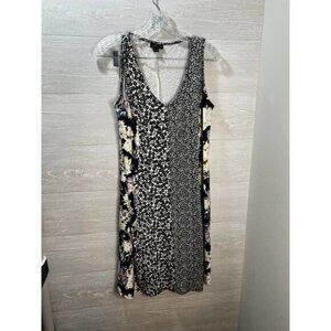 Elevate your style with this elegant sleeveless dress featuring a captivating mixed floral print. Designed with a flattering V-neckline, this wrinkle-resistant dress offers both comfort and fashion for any occasion.