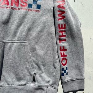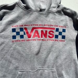 Women's VANS Hoodie Gray Spell-Out Racing L Mid-Riff Skate Street Surf Iconic US. Cotton blend.