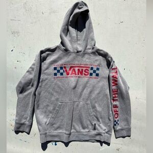 Women's VANS Hoodie Gray Spell-Out Racing L Mid-Riff Skate Street Surf Iconic US