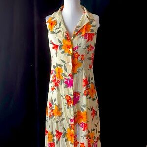 Women’s VICTORIA’S SECRET VINTAGE Floral Button-Down Semi-Sheer Maxi Gown Sz M. slits up bottom sides.