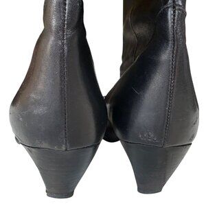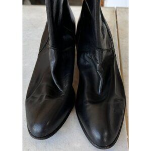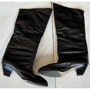 Women's VINTAGE Tall Mid-Heel Black Leather Boots Size 7.5M (BRAND UNKNOWN)-READ
