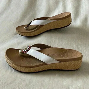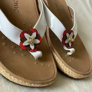 Women’s VIONIC Mimi Ortho Wedge White Leather Platform Sandal Flower Size 9