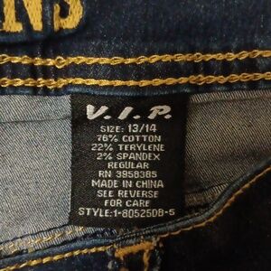 Womens VIP jeans. These are skinny and very cute. Size is 13/14. They are also button fly. Excellent condition. Could be worn with any top. Very comfortable. They are also high rise.