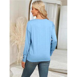 Women's V-Neck Button-Down Long Sleeve Casual T-Shirt Blouse