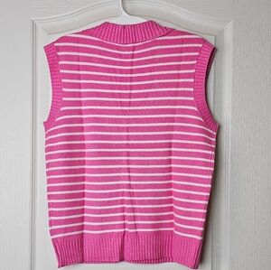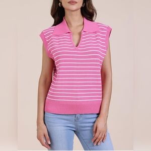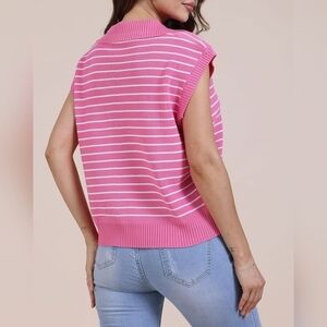 PINK & WHITE Women's V-Neck Cap Sleeve Oversized Collared Sleeveless Striped Sweater Vest