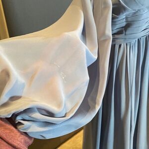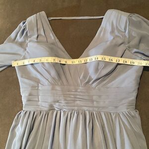*This dress is a blue/gray color. With the close up pictures the camera washes out the color, it is more accurate color in the further away pictures on the dress form